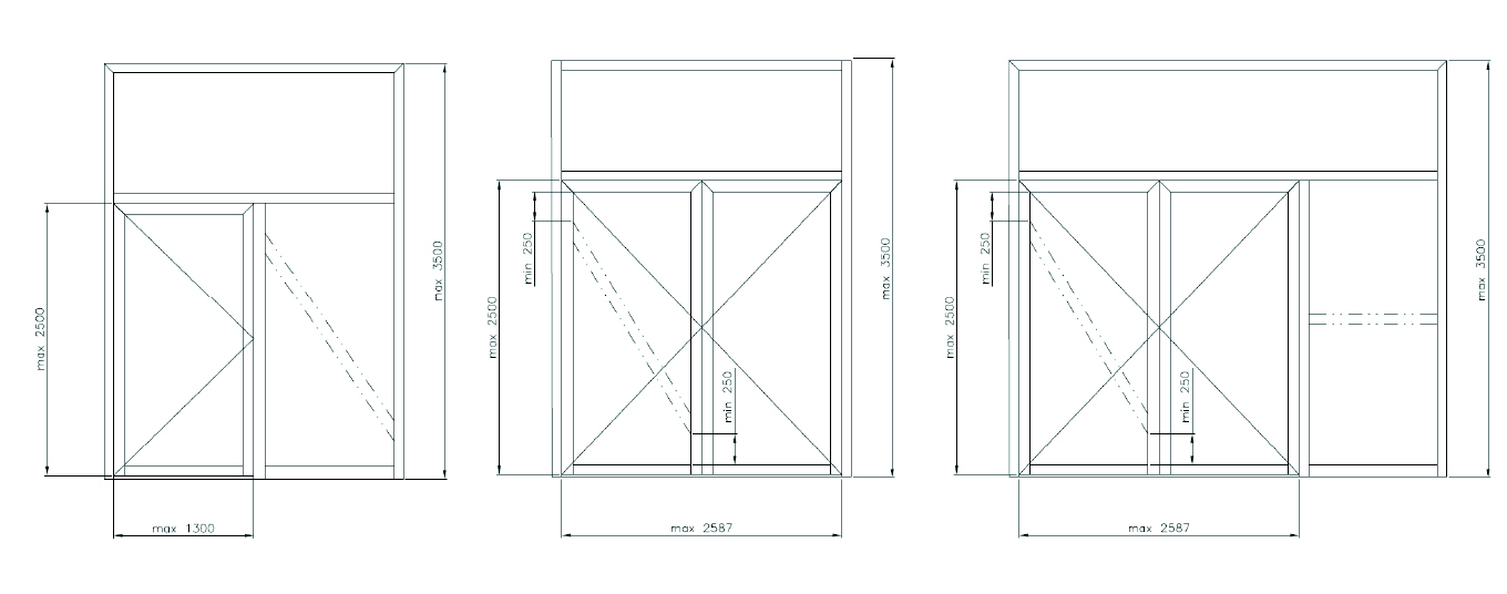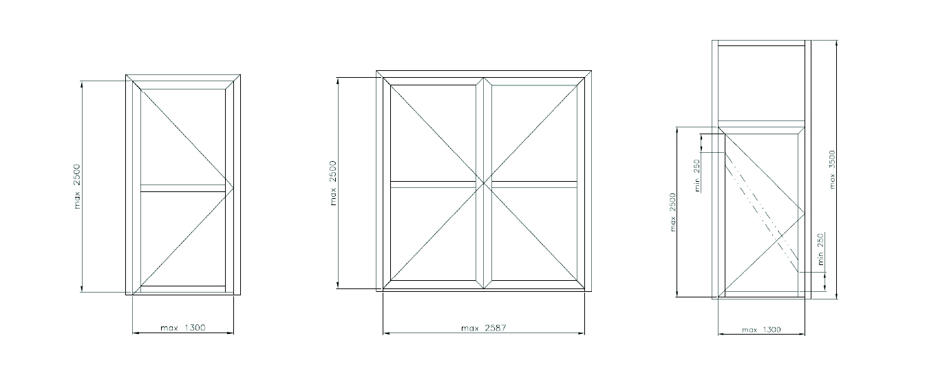 | Glazing thickness | 41-61 mm H to 3000 mm, L to 1300 mm |